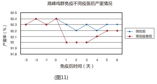產(chǎn)蛋雞產(chǎn)蛋高峰時免疫倍優(yōu)?系列產(chǎn)品,產(chǎn)蛋率基本無影響(圖11)。